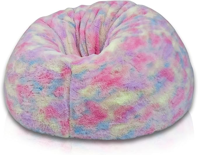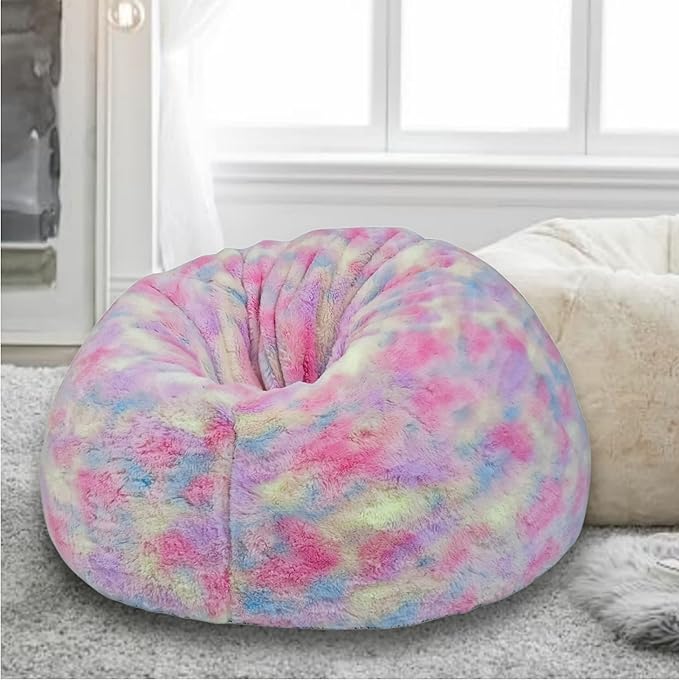 , New Tie Dye Rainbow Design Furry Bean Bag Chair. Premium And Luxurious Fur Bean Bag Without Bean Only Cover Jumbo, Multi