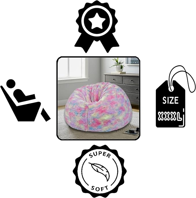 - Special Feature : premium And luxurious Tie Dye Rainbow fur bean bag jumbo, Arm Rest, NO sweat problem