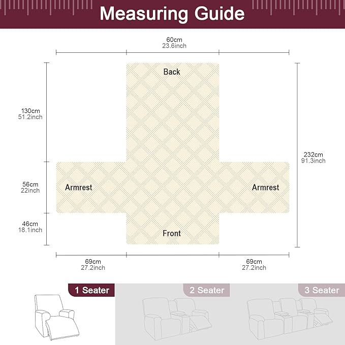 - 【DIMENSIONS GUIDE】Small pet recliner cover fit a chair with a seat width of 23.6 in, see measurement guide in photos. NOTE: Please confirm the size before purchasing. (Due to some lighting reasons, the color of each display will be different, so please refer to the actual color)