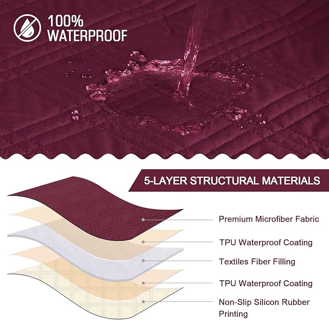 TAOCOCO 100% Waterproof Recliner Chair Cover, Non Slip Recliner Covers for Recliner Chair with Pocket, Washable Reclining Chair Cover Furniture Protector for Kids, Pets(Recliner Chair, Wine)
