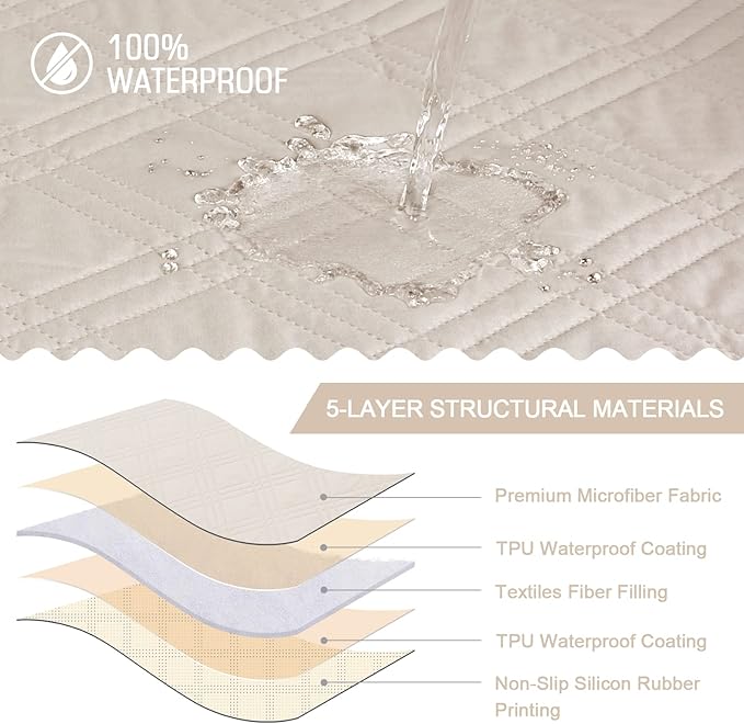 TAOCOCO 100% Waterproof Recliner Chair Cover, Non Slip Recliner Covers for Recliner Chair with Pocket, Washable Reclining Chair Cover Furniture Protector for Kids, Pets(Recliner Chair, Cream)