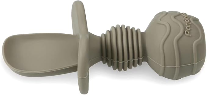 PandaEar 6 Pack Silicone Baby Spoons and Fork Feeding Set- Anti-Choke First Self Feeding Utensils for Baby Led Weaning Ages 3 Months (Tan,Walnut&Grey)