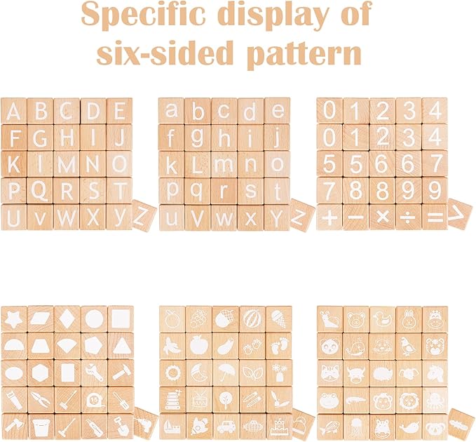- 1. 18 inch Wooden Alphabet Letters Cube: The abc blocks with rounded edges (1. 18 inch/ 30mm) are sanded smooth, making them comfortable and more easier for small hands to grasp, stack, sort, and build.
