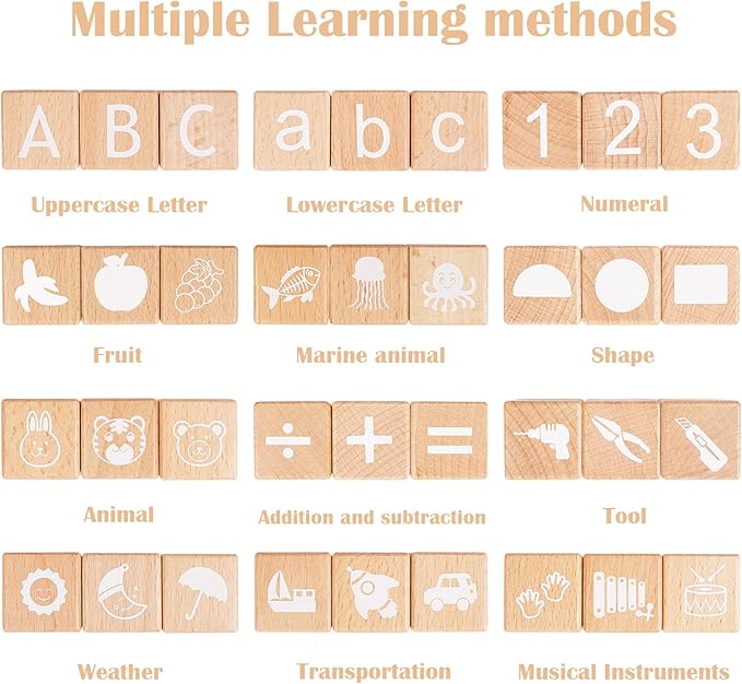 - Durable and Safe Wood blocks: The woodend are made of natural wood with non-toxic water-based paint. Each piece is carefully crafted to make sure so there are no rough edges, ensuring safe play for kids and toddlers.