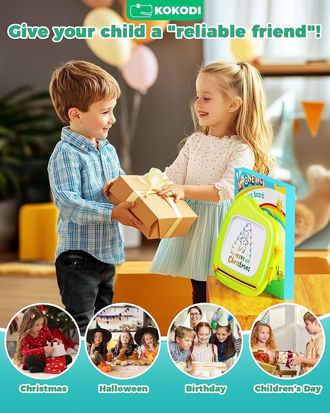 - 【Mom's Helper】KOKODI colorful magnetic doodle for toddlers is easy to use without limiting its fun. It's easy to draw on and easy to remove. It will keep kids busy without any help! Awesome toddler toys for ASD Autism kids. This vivid drawing board is a good helper to accompany kids' growth while stimulating creativity & imagination, cultivating patience and improving hand coordination.