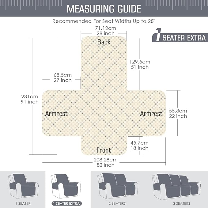 - 【DIMENSIONS GUIDE】 There are two sizes of sofa slipcovers available that will fit most family furniture. Large pet recliner covers fit a chair with a seat width of 28 in, see measurement guide in photos. NOTE: Please confirm the size before purchasing