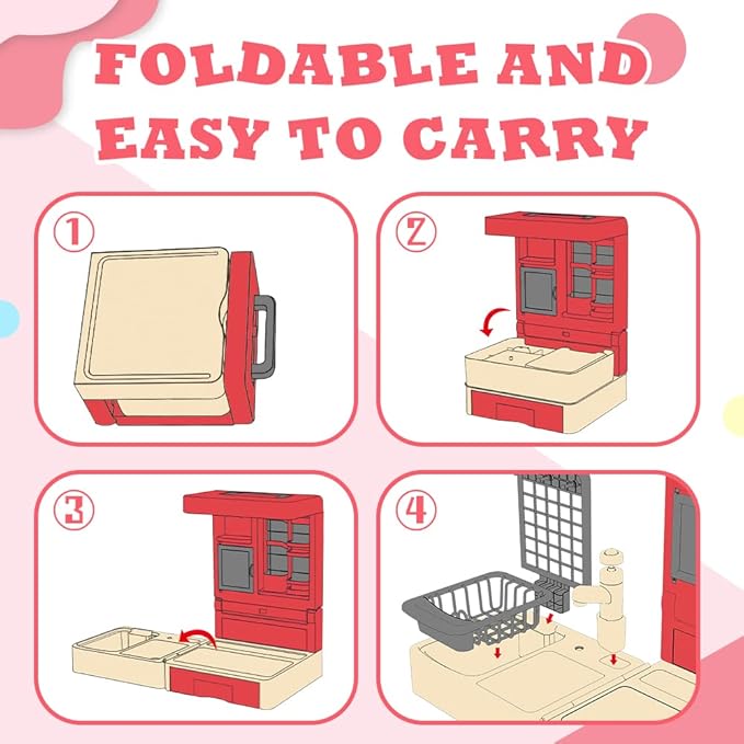 Kitchen Play Set for Kids - 49PCS Pretend Cooking Playset Accessories with Pot and Pan,Dish Rack,Play Sink,Pretend Play Food Toys with Baby&Toddler-Educational Gift for 3 4 5 6 Ages Girls&Boys