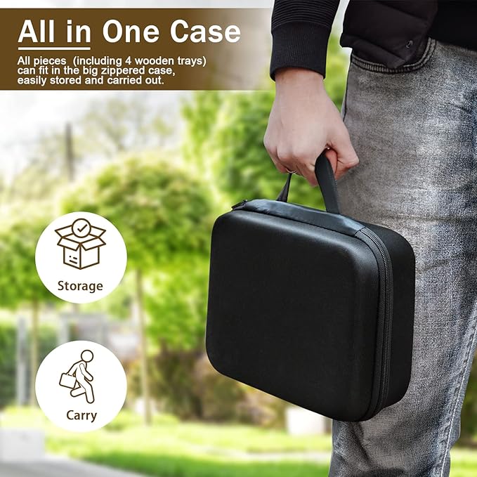 - All in One Case: All pieces (including 4 wooden trays) can fit in the zippered case, easily stored and carried out. The complete set includes: 91 tiles + 4 wooden trays + 1 portable case + 9 colorful trains + 1 instruction + 1 score pad + 1 hub.