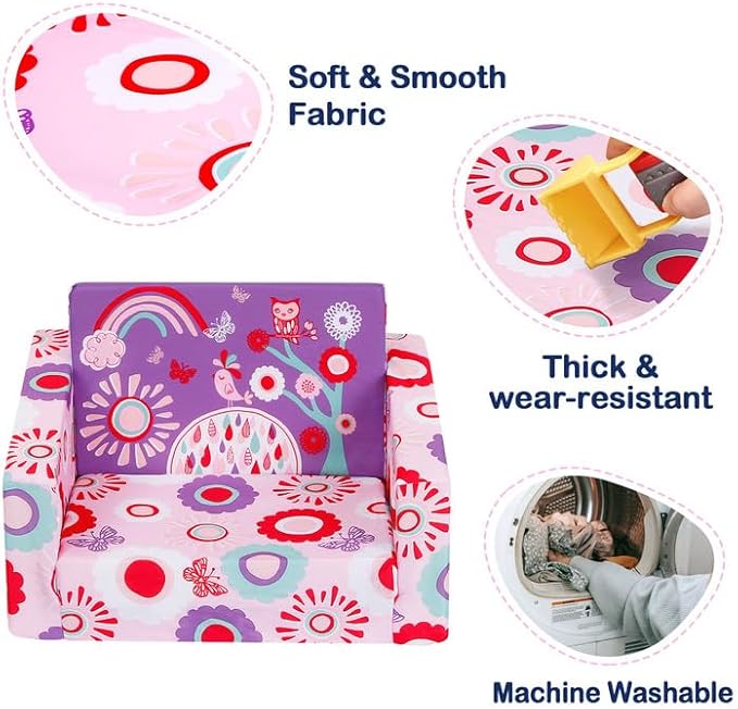 - 2 IN 1 - Perfectly sized sofa bed for kids. Fold-out bottom piece 2 in 1 Flip Open Kids sofa bed, gives childrens the option of lying down flat. Give children to read, play, or folded into a reclining chair and take a nap to provide a more comfortable place.