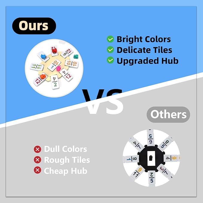 - *EXQUISITE TILES & BRIGHT COLORS: Our mexican dominoes are made from an exclusive blended resin, which is safe as dinnerware and BPA free. The excellent texture with highly polished workmanship, making them look & feel like ivory. Moreover, these tiles are featured with bright, indented and well-painted numbers, making them highly visible and easy to distinguish.