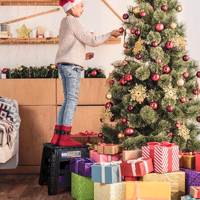 - Safety First: Designed with rounded corners for added safety, this folding step stool minimizes the risk of injury, while the surface is equipped with special rubber dots for a non-slip grip, providing confidence with every step
