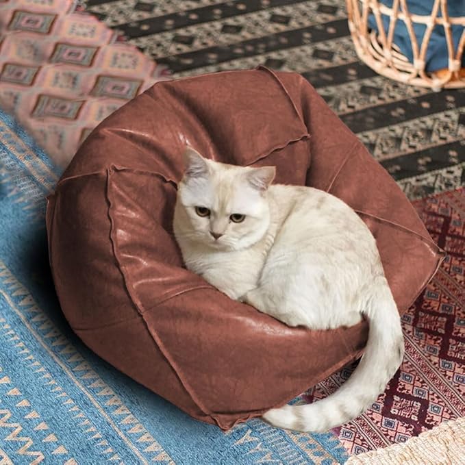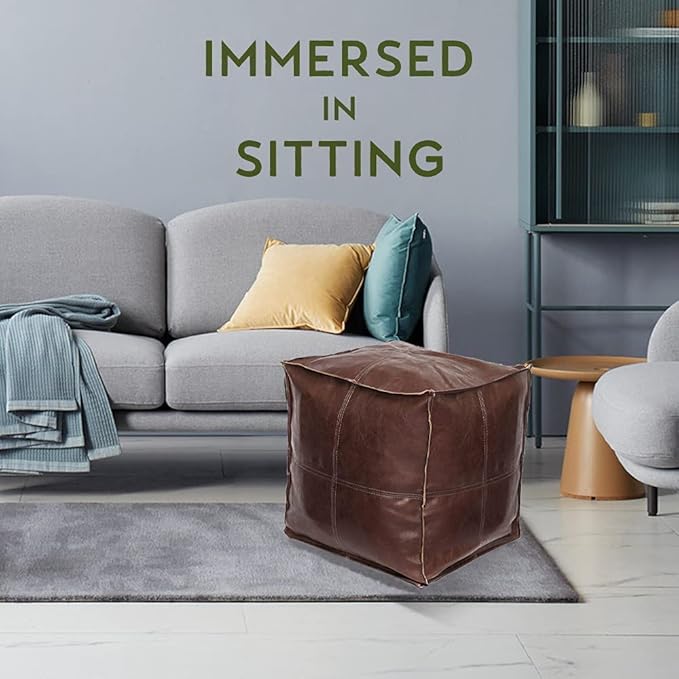 Louis Donné 18 inch Unstuffed Pouf Ottoman Faux Leather Pouffe Floor Chair Waterproof Foot Rest for Living Rooms Bedrooms & Kids Room or House Warming & Wedding Gifts (Brown Coffee, Square)Only Cover