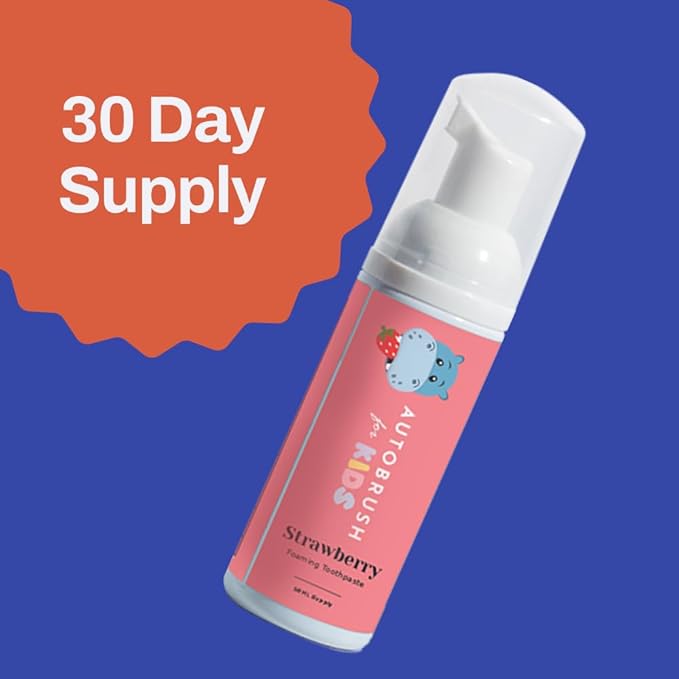 autobrush Kids Fluoride Foaming Toothpaste Strawberry Flavor for Electric or U-Shaped Toothbrush, SLS-Free, Training Toothpaste, Anti-Cavity, Travel Friendly (1 Pack)