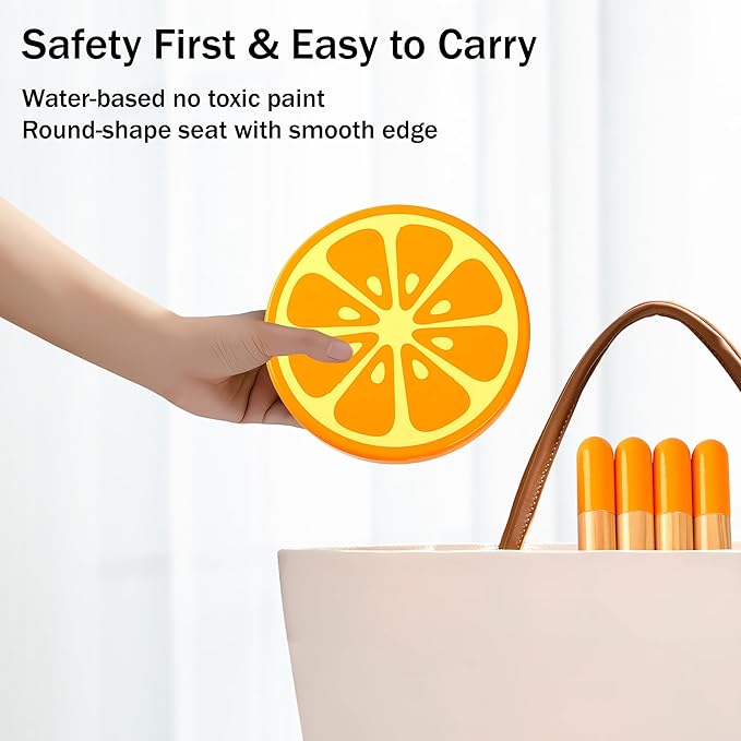 - [Cute & Safety Design]: The cute Orange fruit pattern is very attractive for children,especially for toddlers.Every toddler chair has a smooth edge treatment and 4 anti-skid legs to add stability