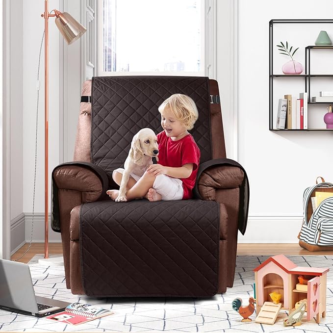 KinCam 100% Waterproof Recliner Chair Cover, Reclining Couch Covers for Pets, Dogs, Recliner Couch Slipcover Furniture Protector with Elastic Straps for Kids(23.6", Chocolate)