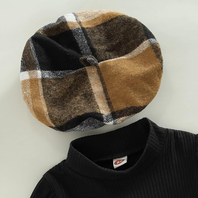 Fernvia Toddler Baby Girl Fall Winter Skirt Set Turtleneck Ribbed Long Sleeve T-Shirt Top & Plaid Skirts Dress 2Pcs Outfits