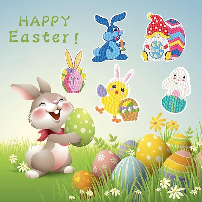 5D DIY Diamond Art Painting Stickers Kits for Kids, Diamond Mosaic Stickers by Numbers Kits Crafts Set for Children, Boys and Girls,Creative Handmade Art Craft Gift (Easter-3)