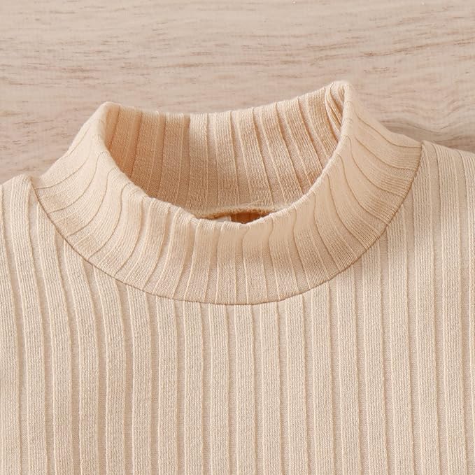 - Appearance: Solid color,long sleeve,ribbed design,turtle neck,t-shirt tops,matching with plaid plead skirt,2pcs dress outfits clothes,make your little one more adorable and fashionable.