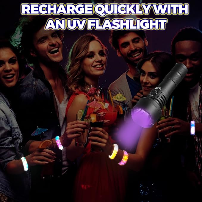 - 💕🍀【Glow in the Dark, Best Party Favors】— RECHARGE QUICKLY WITH AN UV FLASHLIGHT OR UNDER THE SUN.The length of the wristband can be adjusted according to the actual situation of the wrist, which is suitable for most people to wear and play. This set is great for party favors in camping, families, schools, offices,...