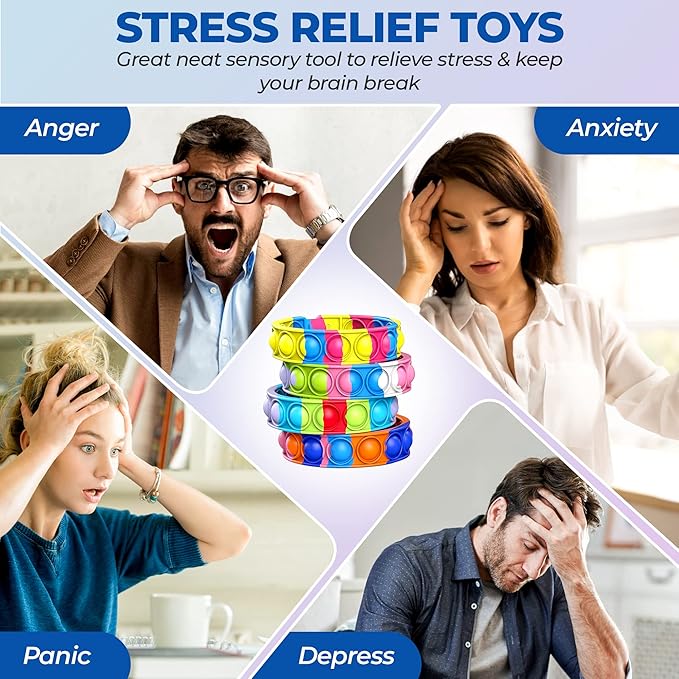 - 💕🍀【Perfect Gift】— These Push bubble sensory toys can be used as fashionable and cool bracelets suitable for all-age wear and any occasion. Perfect for sports, gym, party, team training, souvenirs, promotional and marketing materials, and so much more. Perfect for birthday gifts, party favors, family reunions, class prizes, Easter gift bag fillers, Halloween, Christmas, Thanksgiving and more.