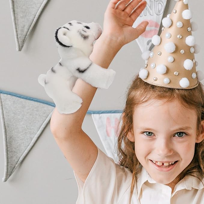 - Huggables Plush Animals Slap Band: Comes with 1pc plush slap band, the size is about 14.00X12.00X11.00cm/5.50X4.72X4.32inch. Compact size and light weight, easy to wear and take to any places you prefer, will not occupy much space