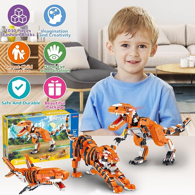 1030 Piece STEM Building Toys-3in1 Mini Transforming Toy Building Set with Dinosaur/Tiger/Shark Building Kit, Educational Toy for Kids 6-12, Christmas Birthday Gifts for Girls Boys Ages 8-14+