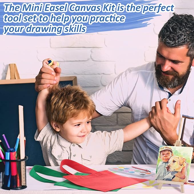 - Suitable Size to Use: the stretched canvases for painting measure about 4 x 4 inches/ 10 x 10 cm, and the easel is about 3.2 x 5.9 inches/ 8 x 15 cm, small and proper, matching each other nicely, convenient for kids to draw and paint, the gift bag is 8 x 8 inches/ 20 x 20 cm, easily accommodates a variety of gifts