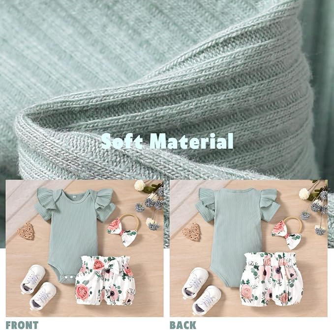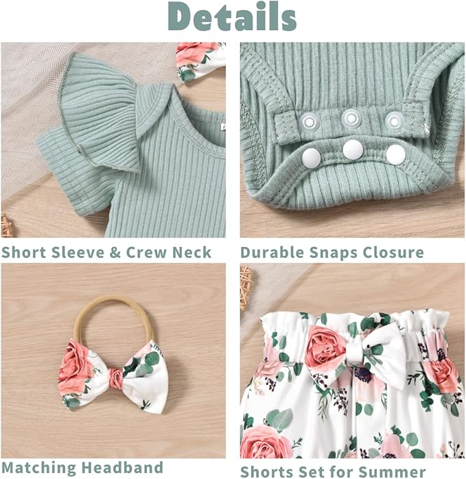 - ✔ QUALITY FIRST : Crafted in soft ribbed cotton material, high absorbent and breathable, cozy feel of this baby clothing to keep little baby cool and comfy all spring & summer. Are you ready to wrap your little princess up in this fashion baby girl shorts set?