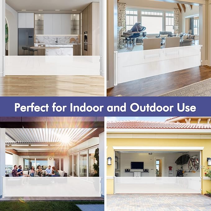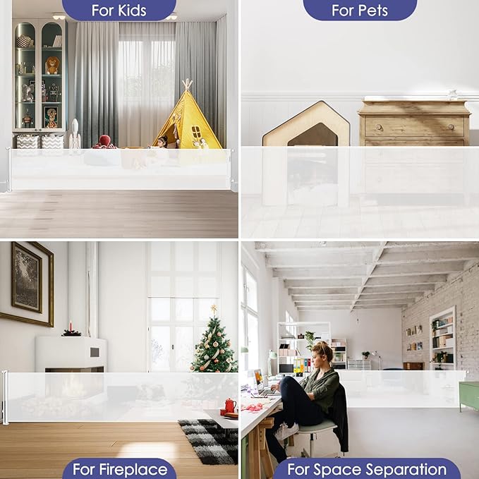 - [Effective Barrier] KISKIZ retractable baby gates are a versatile home security solution. Whether you want to create a safe baby fence play area for your baby or keep your pets out of certain areas, this extra long baby gate has got you covered.