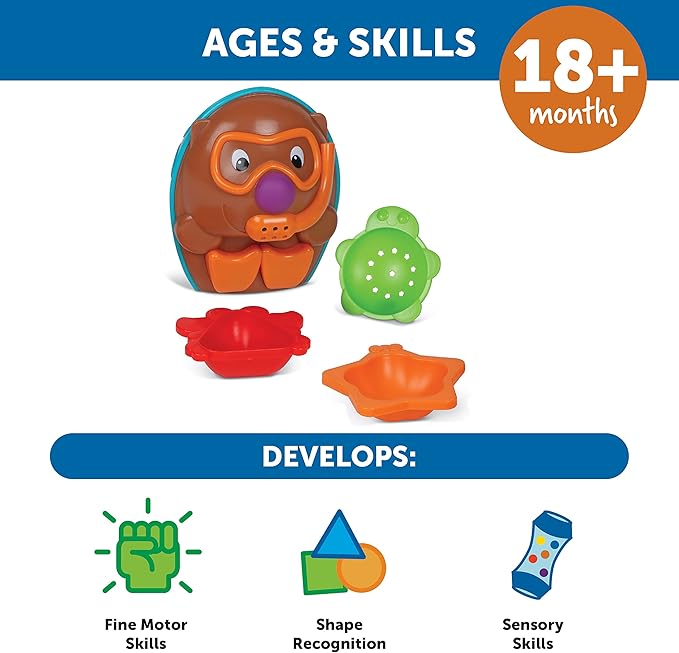 - Fine Motor Fun: Sized for little hands, this toddler bathtub toy’s scoop-and-pour shape shells also help kids build the coordination, hand strength, and other fine motor skills needed for school success!