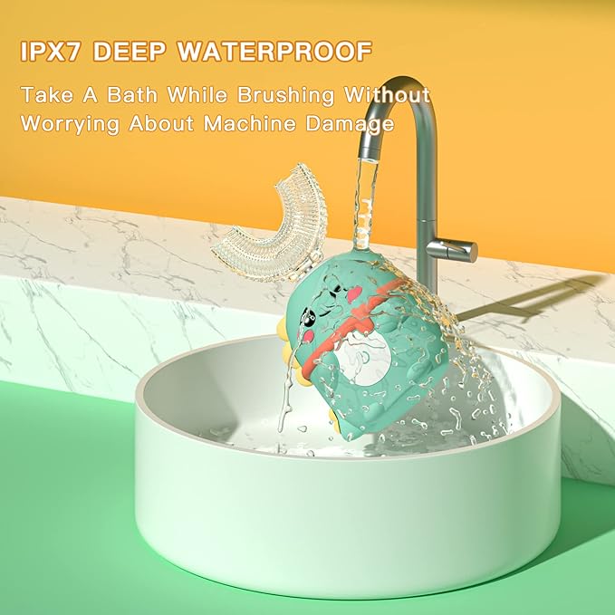 - Two Brush Heads Options: Kids electric toothbrushes provide two brush heads, food-grade silicone u-shaped brush head and soft brush head, U-shaped design is perfect for toddlers and children's teeth, soft silicone, providing a comfortable brushing sensation, thus developing healthy brushing habits, with the soft brush head for more efficient deep cleaning
