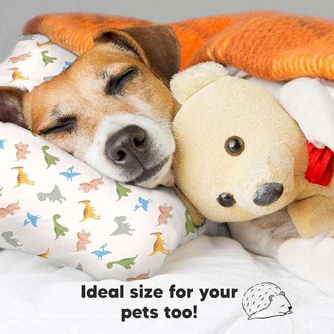 Toddler Pillow with Pillowcase - 13x18 My Little Dreamy Pillow, Organic Cotton Toddler Pillows for Sleeping, Kids Pillow, Travel Pillows, Mini Pillow, Nursery Pillow, Toddler Bed Pillow (Roarsome)