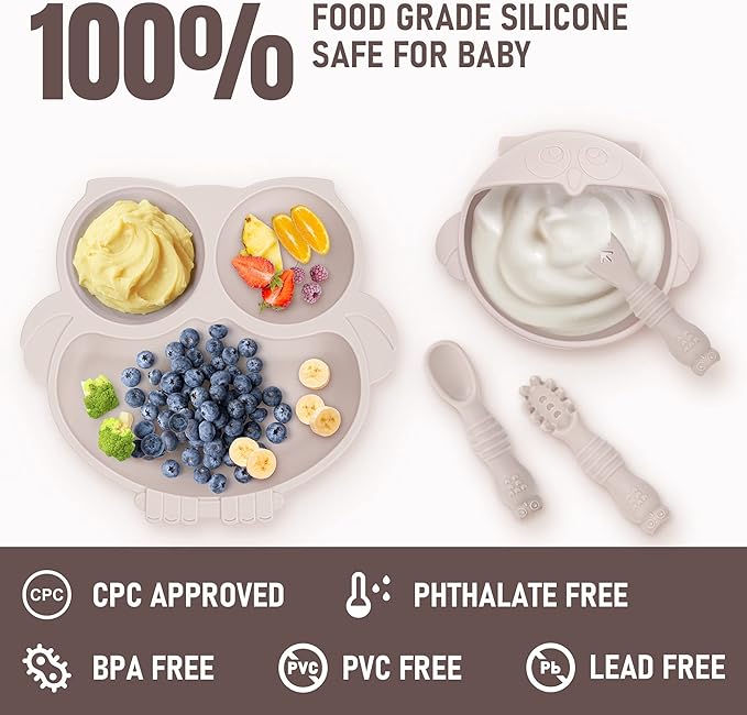• Food Grade Safety Silicone Weaning Set: The baby weaning set is made of food grade silicone material, which is free of BPA, PVC, phthalates, and other harmful chemicals. The safe and healthy silicone feeding set not only provides convenience for the baby to train for self feeding, but also the soft and safe silicone material will not affect the baby's growing teeth. It is the most ideal choice for baby weaning.