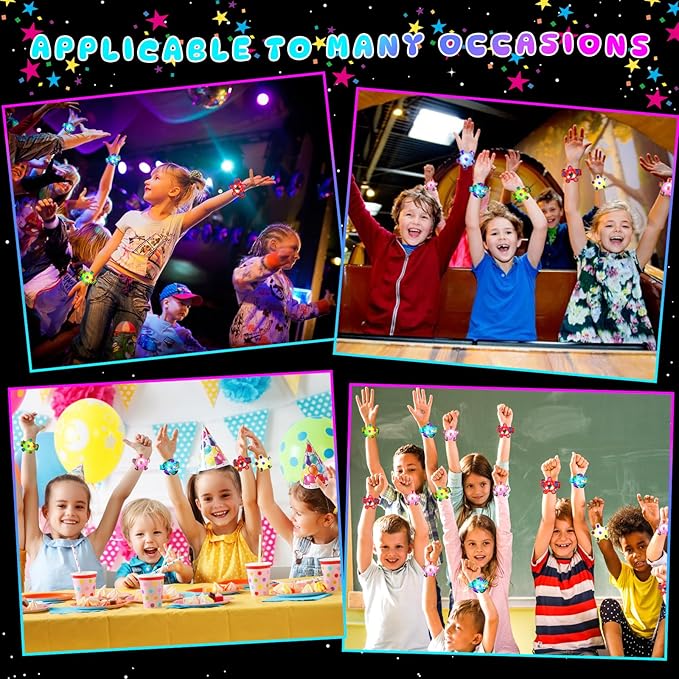 - Party Favors for Kids & Adults: The wrist strap of this light up bracelet is smooth, soft, and skin-friendly, nice looking and comfortable! 5 kinds of adjustable lengths make it fit to most wrists of different size, suitable for all kids and part of adults. And the double buckle ensure it firmly enough on the wrist, won't fall off even if you shake it hard! Don't hesitate, just wear it to enjoy the fun brought by the LED light up party favors to the fullest