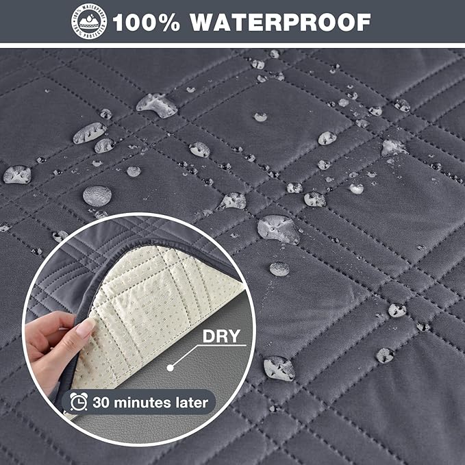 TAOCOCO 100% Waterproof Loveseat Recliner Cover, Non Slip Split Recliner Couch Covers for 2 Cushion Couch with Elastic Straps, Washable Recliner Chair/Furniture Protector for Pets(2 Seater, Dark Grey)