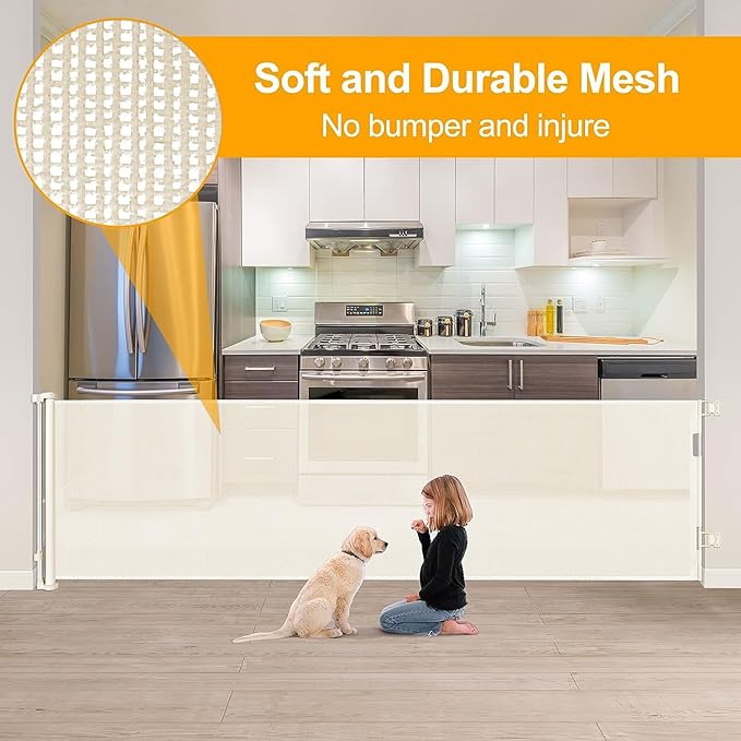 180 Inch Extra Long Baby Gate Extra Wide Dog Gates for Large Openings Extra Large Baby Gate Dog Gate for Doorways Extra Wide Retractable Baby Gates Extra Wide Indoor Outdoor Retractable Gate (Beige)
