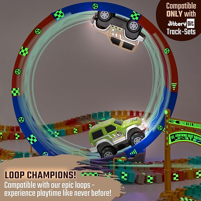 JITTERYGIT Replacement Cars for Tracks - Extra Race Car Accessories for Dinosaur Race Track & Train Toy Gift - Compatible with Most Tracks for Kids Boys and Girls (2 Jeeps Pack)