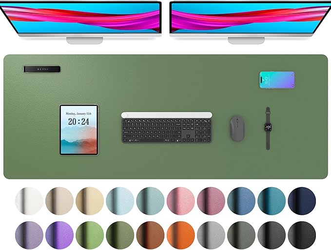 Aothia Leather Desk Pad Protector, Mouse Pad, Office Desk Mat, Non-Slip PU Leather Desk Blotter, Laptop Desk Pad, Waterproof Desk Writing Pad for Office and Home (48"x17", Olive Green)