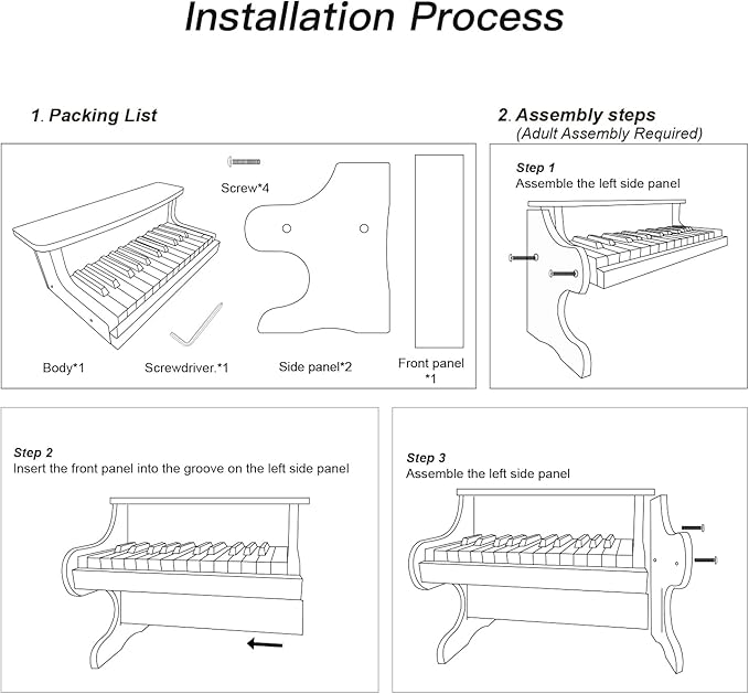- High Standard:The piano keyboard has been certified by TUV and meets the standard of ASTM F963. All materials are non-toxic and odorless, allowing children to use them with peace of mind. Natural walnut color appearance, like a piece of art. (Adult assembly required.)