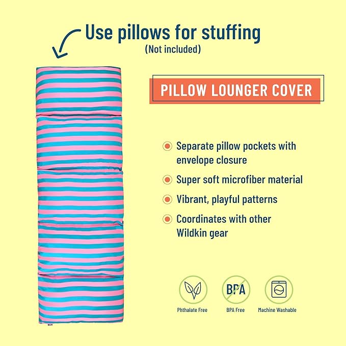 Wildkin Kids Microfiber Floor Lounger – Travel-Friendly, Sleepovers, Pillow Not Included - Pink Stripes