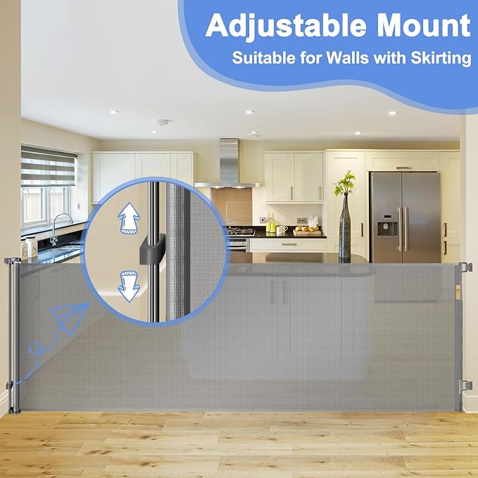- Suitable for walls with skirting: the accessories of the mesh baby gate can slide up and down, suitable for different styles and heights of floor skirting.