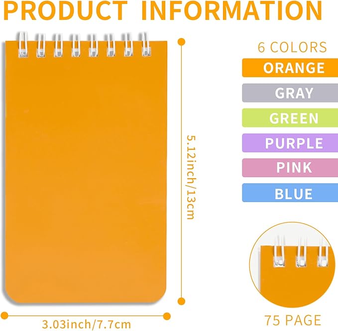 6pack Pocket Notebook Small Notepad Pocket Notepad Small Spiral Notebooks 3X5Inches (6-2)