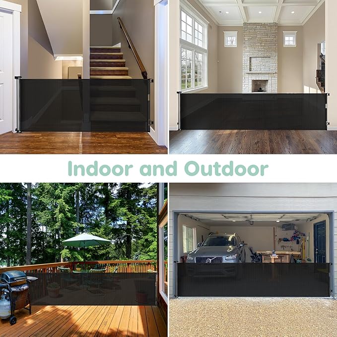 - Saving Space: the extra long baby gate is retractable gate, so when you're having a party at home or when your babies and pets are not at home you can roll up the mesh and not take up your space.