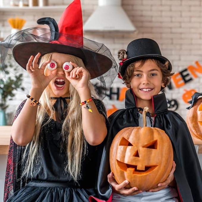 12pcs Halloween Bracelets for Kids, Halloween Party Favors Bead Bracelets and Charms Set Trick or Treat for Boys Girls Halloween Goodie Bag Fillers