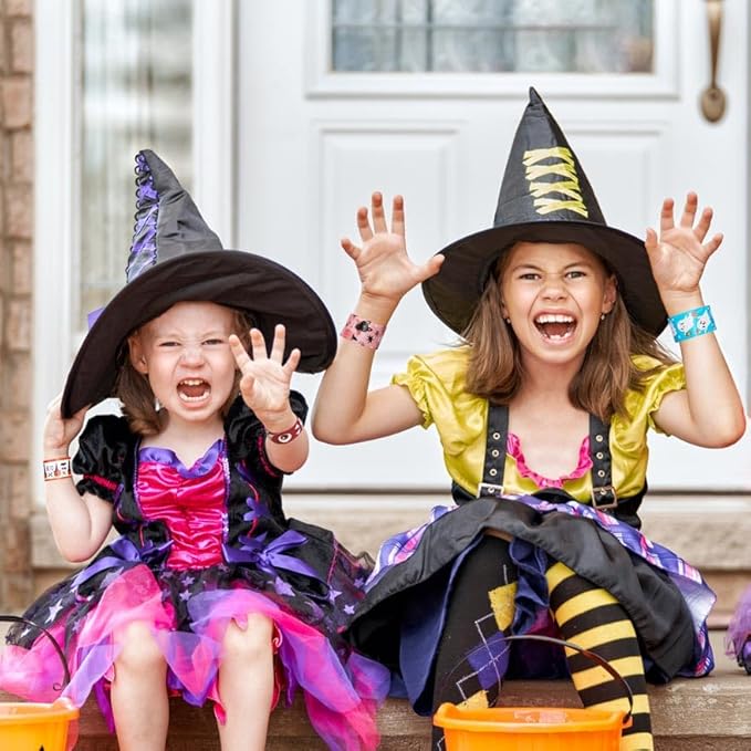 - KIDS SLAP BRACELETS OCCASION: Whether wearing a kids snap bracelets at a Halloween party or when you explore a haunted house or attraction wearing a Halloween bracelet is the perfect accessory to inject a little holiday magic into every moment of this enchanting season, and adds a festive flavor and enhances your scary experience.