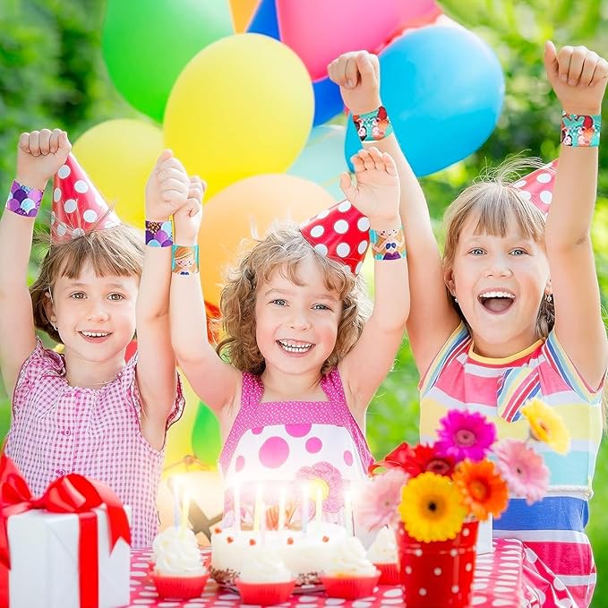 - 【Easy to Wear】 Enjoy the fun of popping from a straight strip to a wrist-hugging snap bracelets kids in an instant. Simply slap kids bracelets on your wrist & they will form a comfortable circle based on the size of your wrist. The bulk party favors for kids little girl bracelets will not break or scratch your skin and it is lightweight and comfortable, allowing you to wear cute slap bracelets for boys for an extended period of time.