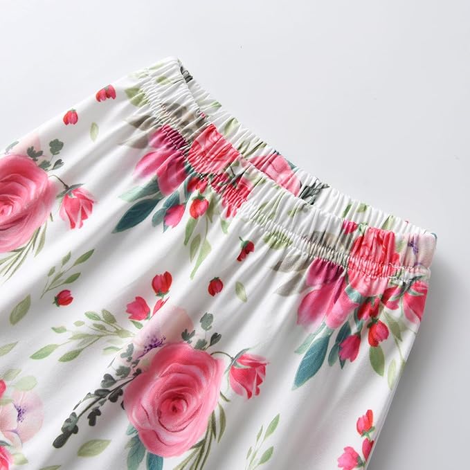 KuKitty 3Pcs Baby Girl Outfits Set Long Sleeve T-Shirt Tops Flowers Pants with Headband