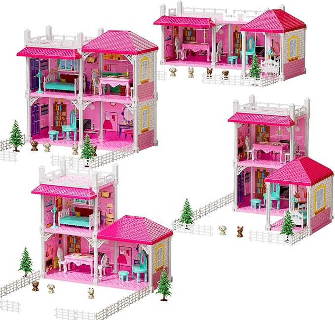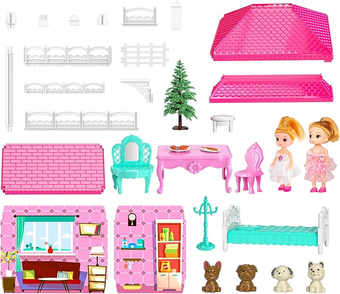 - Easy to Assemble: The small toy playset can be assembled into 2 rooms, 3 rooms and 4 rooms, etc., or it can be assembled into any style. The combination of building toys and cottage allows kids to enhance thinking and innovative abilities while having fun