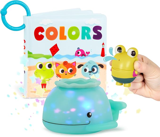 - Baby Bath Toys: Make a splash and glow all day with a color-changing frog squirt and floating light-up whale!