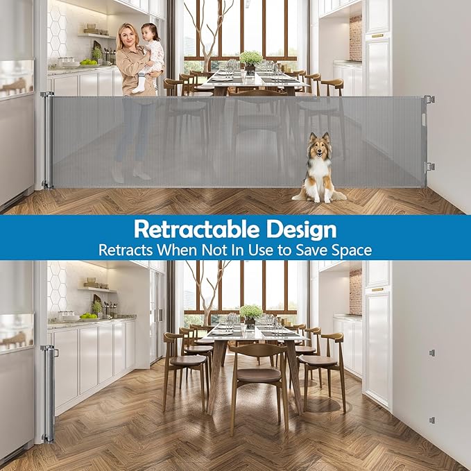 - Flexible Retraction for Space-Saving: Our retractable dog gate smoothly retracts when not in use or when guests visit, offering both space-saving benefits and convenient access.